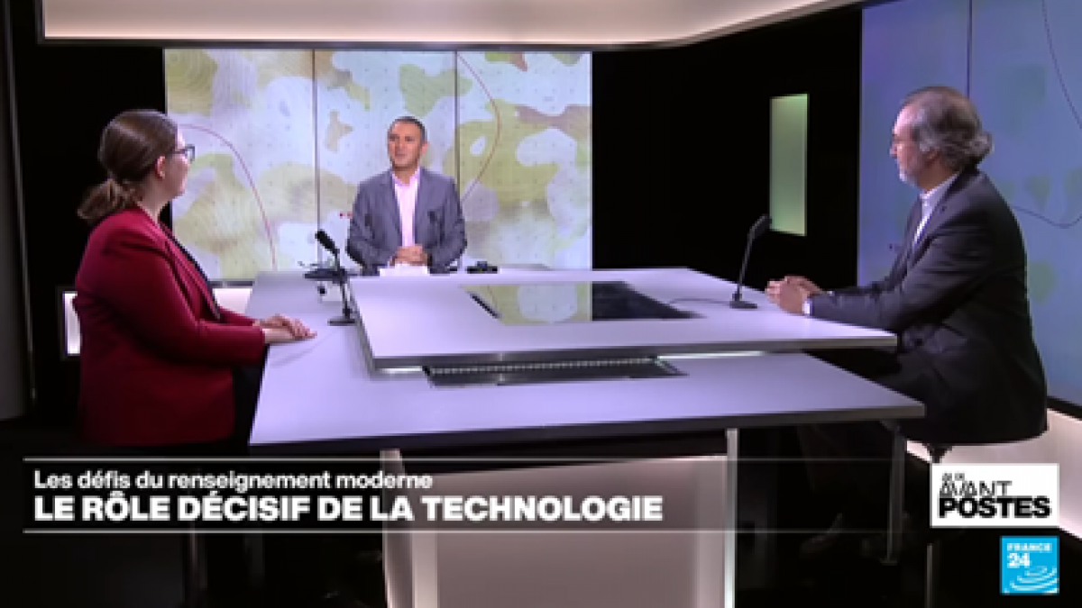 Agathe Couderc et Sébastien-Yves Laurent dans l'émission "Aux avant postes" de France24 en décembre 2025 sur le thème "les défis du renseignement moderne - le rôle décisif de la technologie".